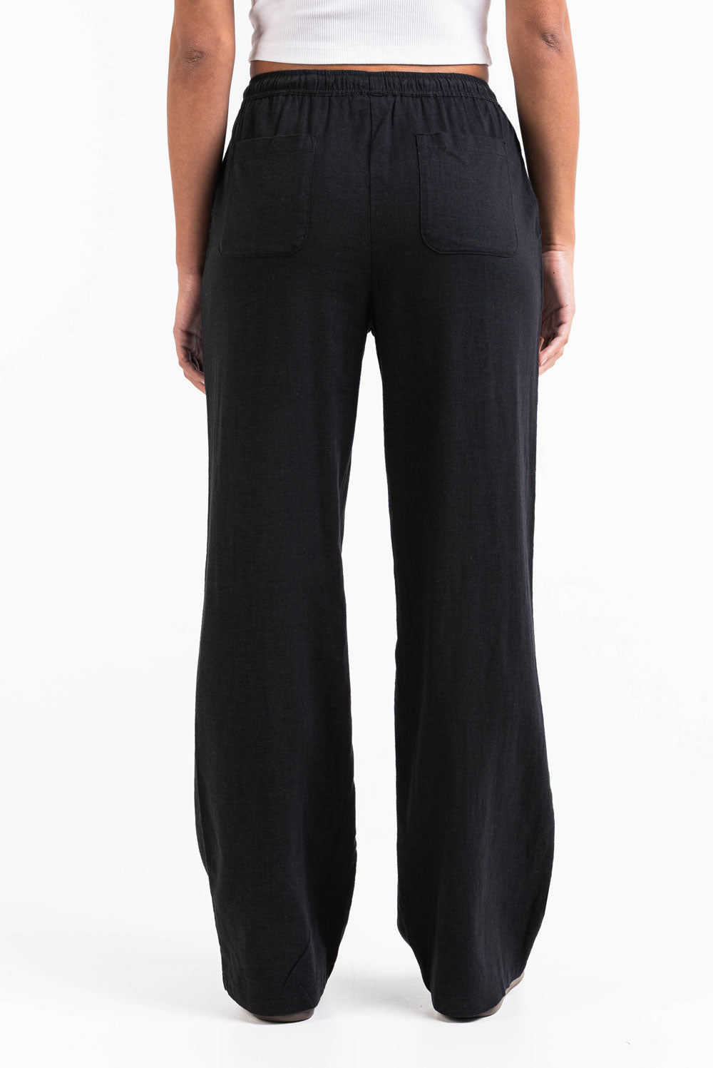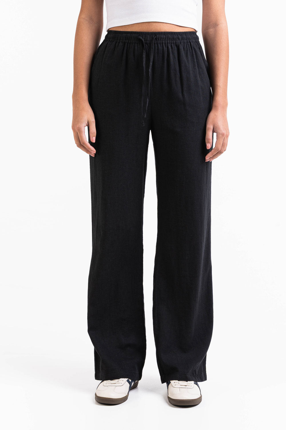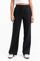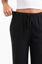 Mila 01High Straight Linen Pants - Black