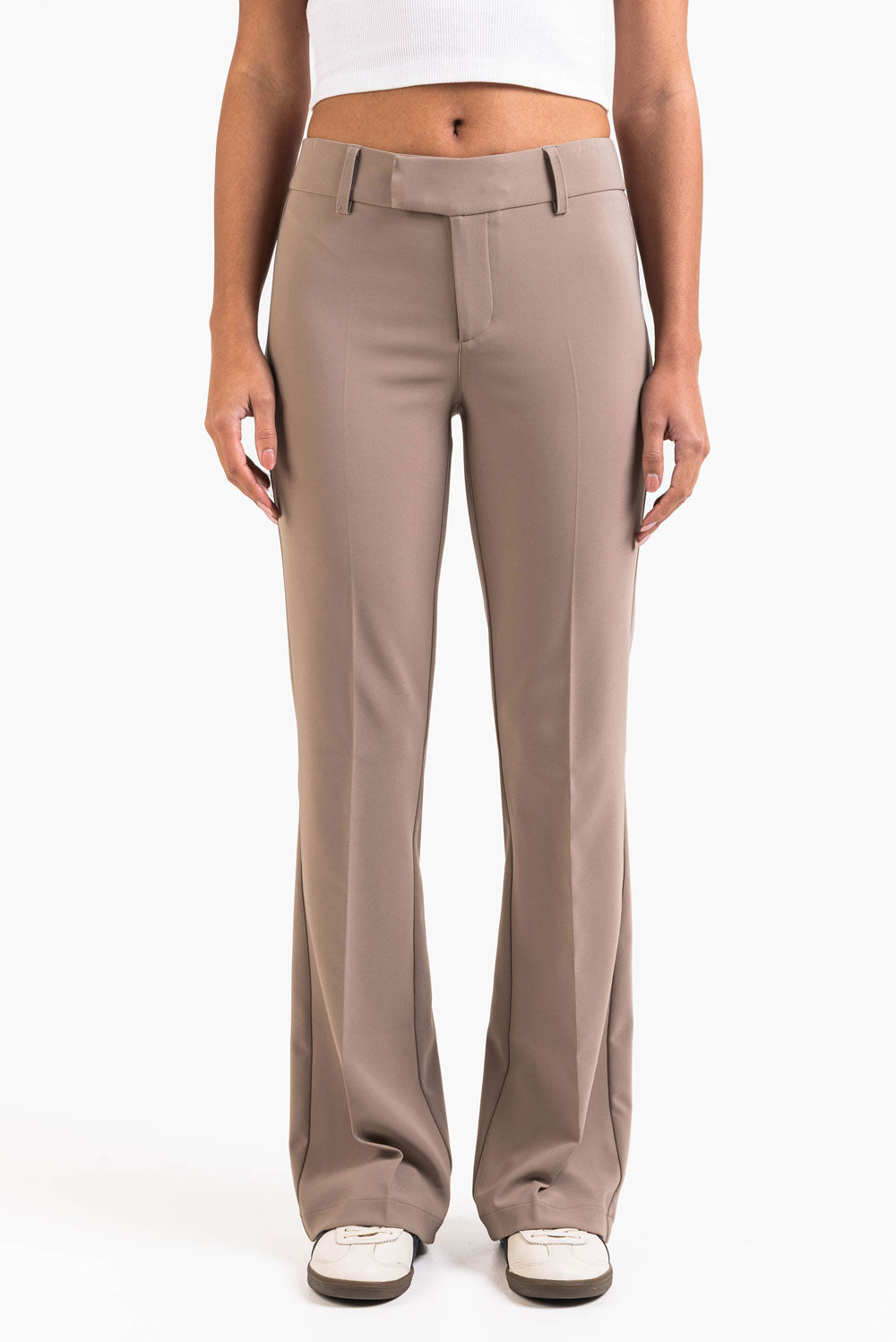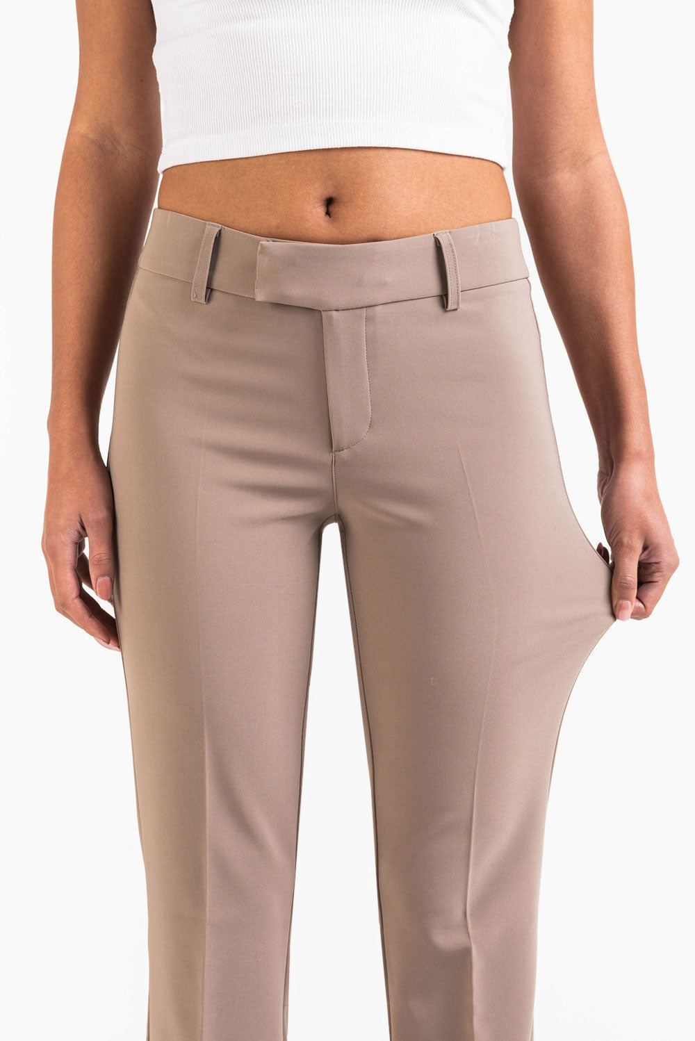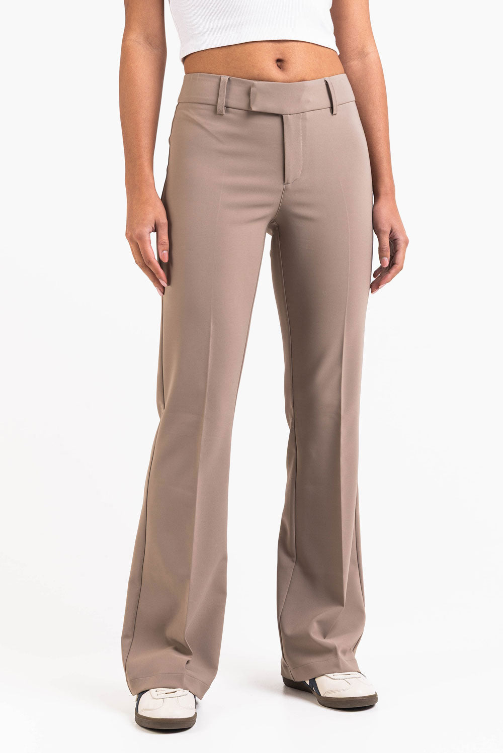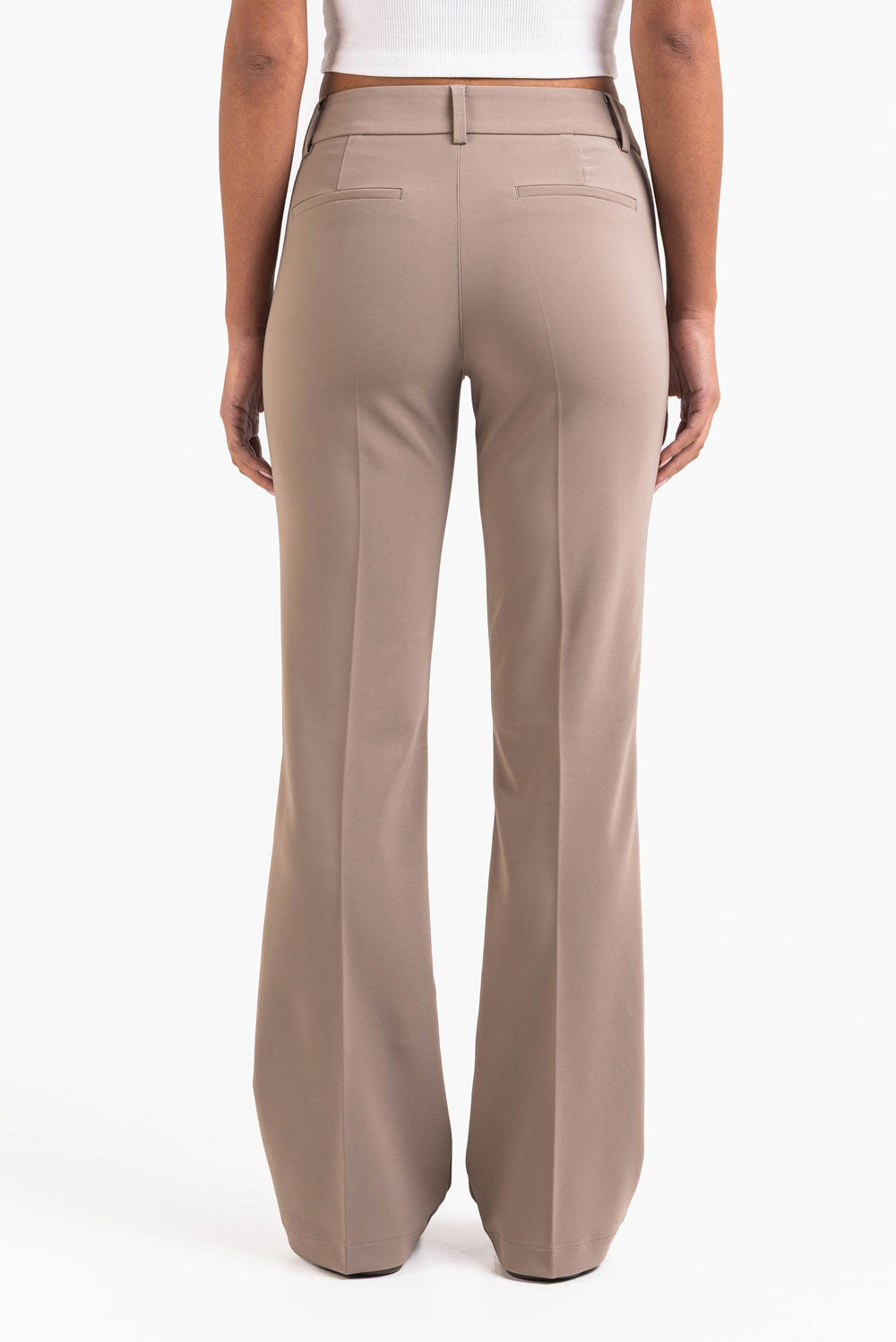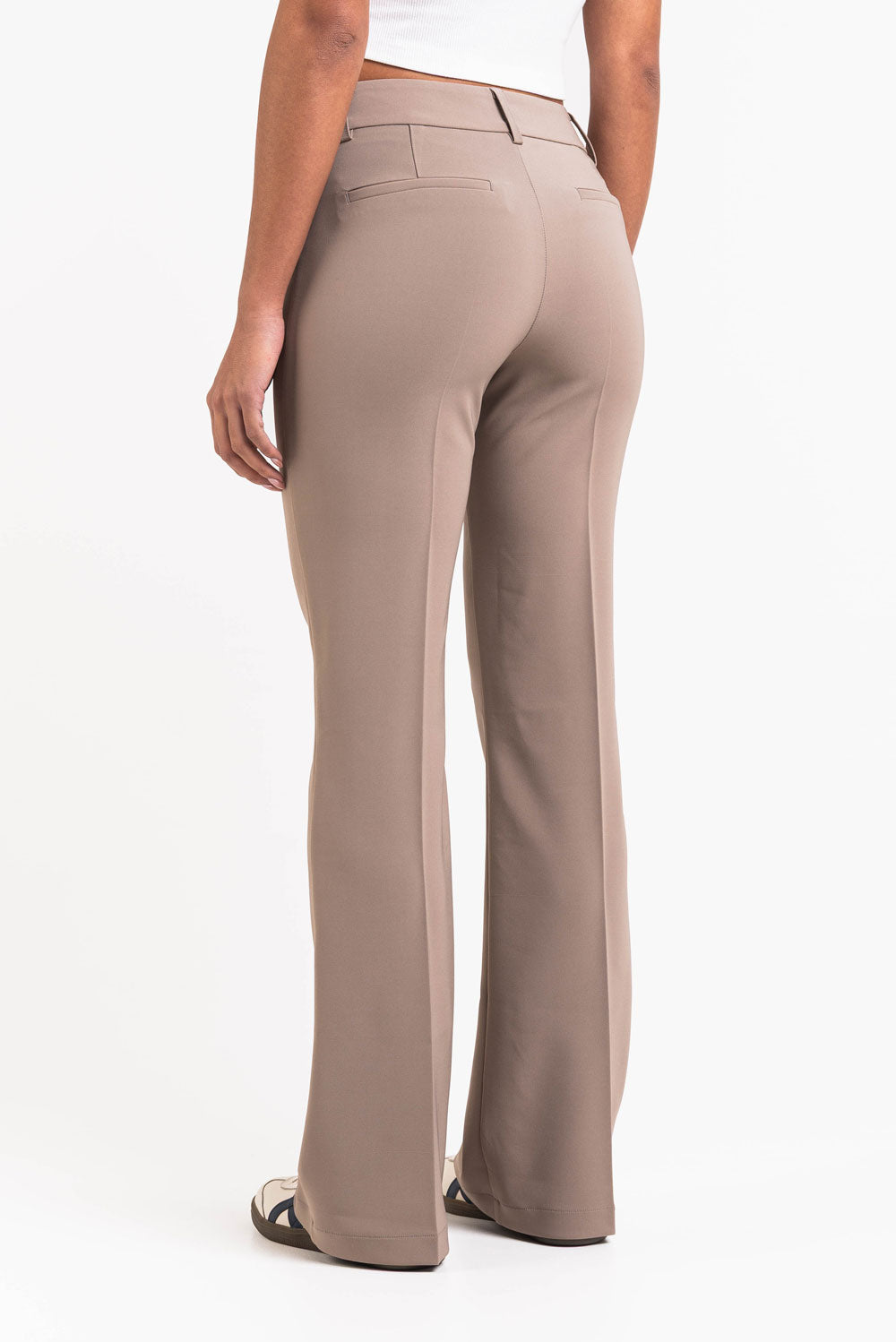 Diese Anzughosen mit mittlerer Taille haben eine Bootcut-Passform. Hergestellt aus einem dehnbaren Stoff für ganztägigen Komfort. Aufgesetzte Gesäßtaschen und großzügige Gürtelschlaufen bieten Platz für sowohl schmale als auch breite Gürtel. Die Hose wird mit Reißverschluss, Haken und verdecktem Knopf geschlossen.