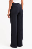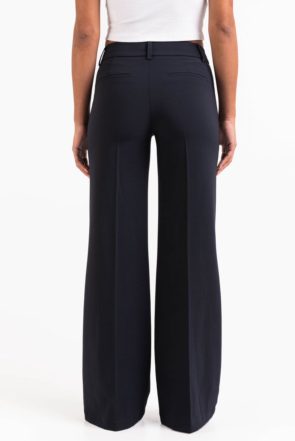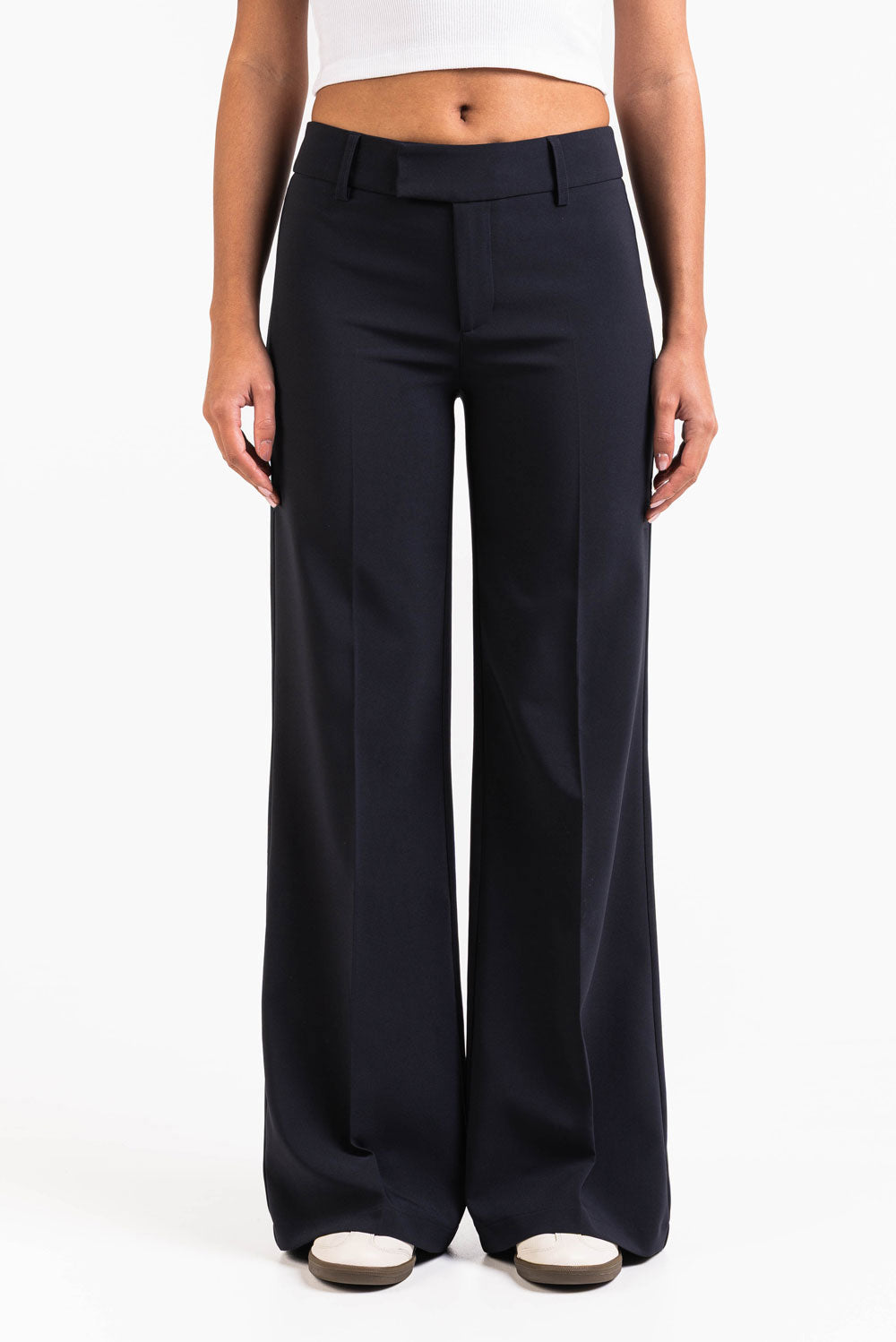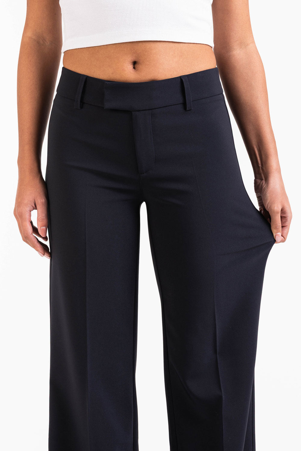 Anzughosen mit mittlerer Taille und ausgestellten Beinen. Hergestellt aus einem dehnbaren Stoff, der den ganzen Tag über einen bequemen Sitz garantiert. Mit aufgesetzten Gesäßtaschen und breiten Gürtelschlaufen, die sowohl schmale als auch breite Gürtel halten. Die Hose wird mit Reißverschluss, Haken und verdecktem Knopf geschlossen.