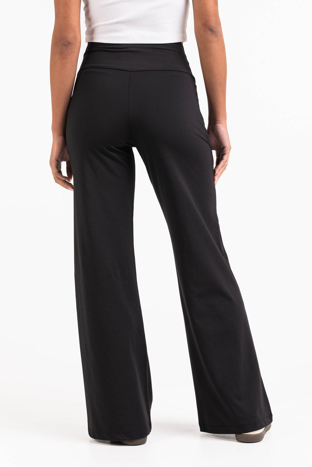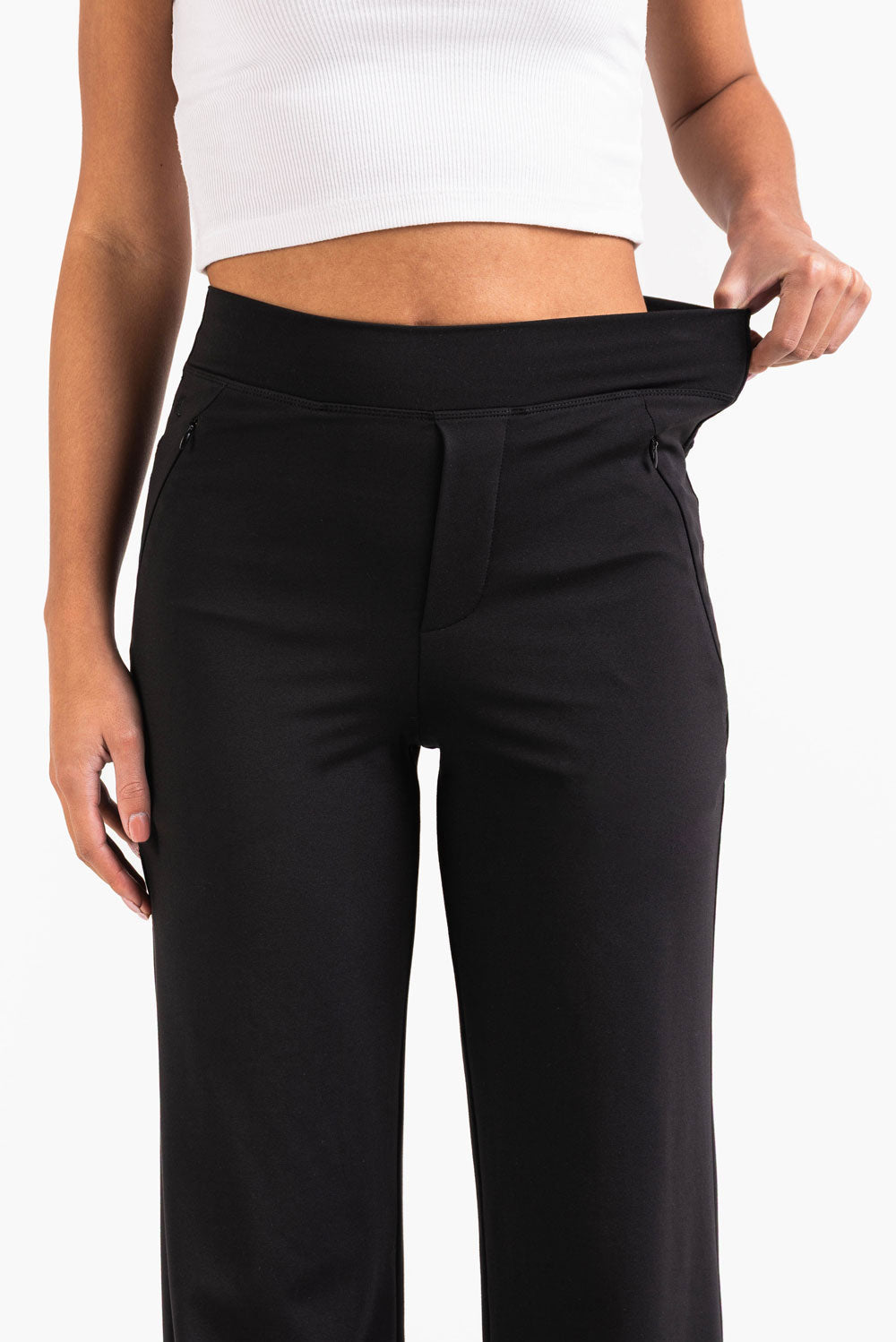 Diese Hose mit hoher Taille hat weite Beine und praktische Seitentaschen. Ein elastischer Bund und ein falscher Reißverschluss sorgen für Komfort, wodurch sie zu einer vielseitigen und alltagstauglichen Option werden.
