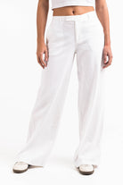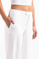 Leinenhose mit mittelhohem Bund, weitem Bein und lockerer Passform. Seitentaschen, angedeutete Gesäßtaschen und Gürtelschlaufen für schmale und breite Gürtel. Die Hose wird mit Reißverschluss, Haken und einem verdeckten Knopf geschlossen.